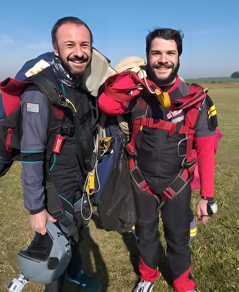 Hamilton Junqueira: Era uma vontade desde criança saltar. Eu simulava o comando saltando de qualquer lugar desde os 4 anos de idade! Mas o duplo só aconteceu em 2009, com o Érico, da Skydive Boituva, junto com um pessoal que trabalhava comigo.
